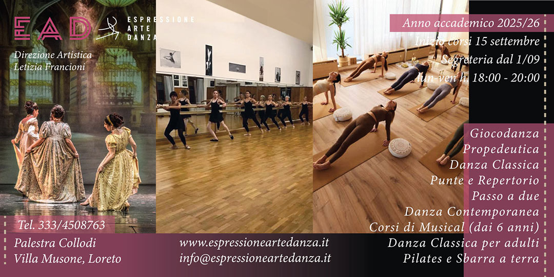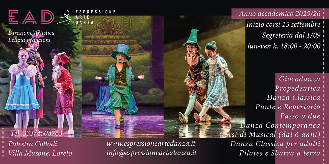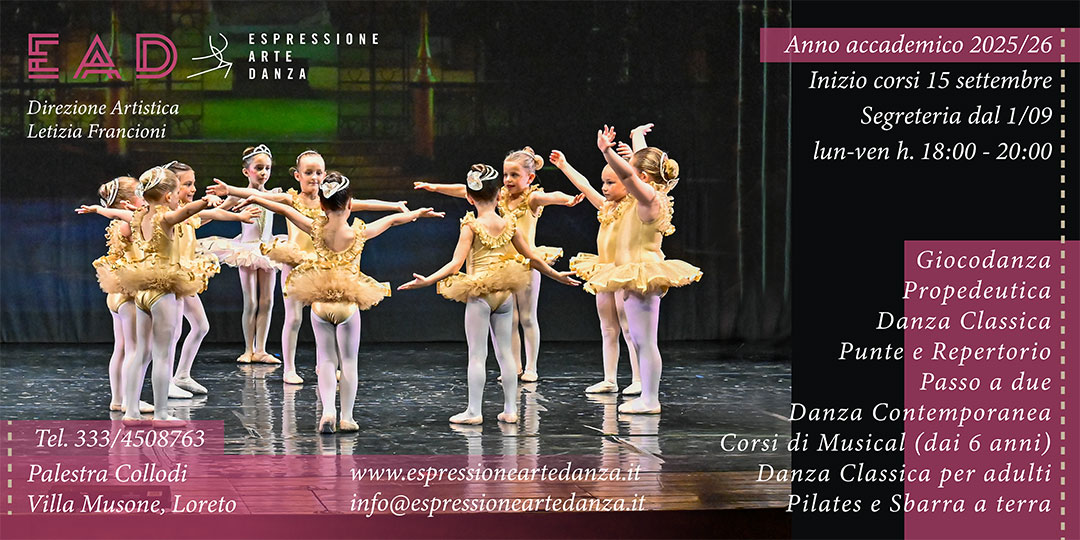 Copyright © 2025 espressioneartedanza - ASD Espressione Arte Danza Sede legale: Via San Flaviano Vecchio 8, Recanati MC CAP: 62019 P.I.01651650432 C.U. BA6ET11